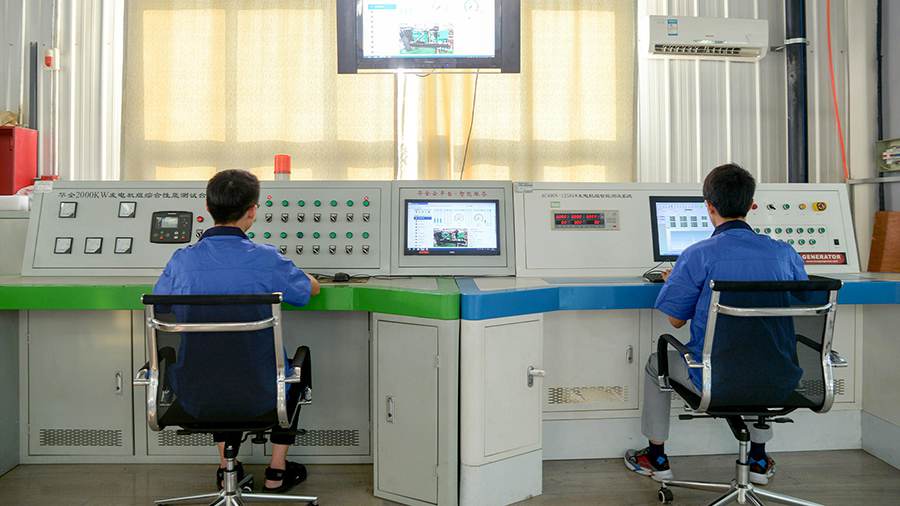 智能檢測中心,主要對公司全線產品的各項性能進行出廠檢測,檢測項目包括輸出功率、高低壓、并機、自動保護功能、穩態帶負載運行等十余項數據,檢測范圍最高可達5000KW產品。