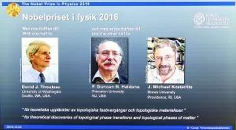 瑞典皇家科學院10月4日宣布,將2016年諾貝爾物理學獎授予大衛•索利斯(David J Thouless)、鄧肯•霍爾丹(F Duncan