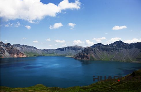 天池的面積約10平方千米,湖面呈橢圓形,長(zhǎng)4.85千米,寬3.35千米,圍繞一周大約13千米。從空中俯瞰天池,猶如是鑲在群峰之中的一塊碧玉。關(guān)于長(zhǎng)白山天池,還有一個(gè)美麗的傳說(shuō)呢。據(jù)說(shuō),天池原本是太白金星的一面寶鏡。西王母有兩個(gè)女兒,長(zhǎng)得的相像,外人很難說(shuō)清楚姐妹倆究竟誰(shuí)更漂亮。在一次蟠桃盛會(huì)上,太白金星掏出寶鏡,說(shuō),“只要用它一照,就能看到誰(shuí)更美”。小女兒先接過(guò)鏡子,只照了一下便羞澀地遞給了姐姐。姐姐卻對(duì)著鏡子左顧右盼,越看越覺(jué)得自己漂亮。這時(shí),寶鏡說(shuō)話了:“我看,還是妹妹更漂亮。”姐姐大怒,當(dāng)即將寶鏡拋下瑤池,落到人間變成了天池……
